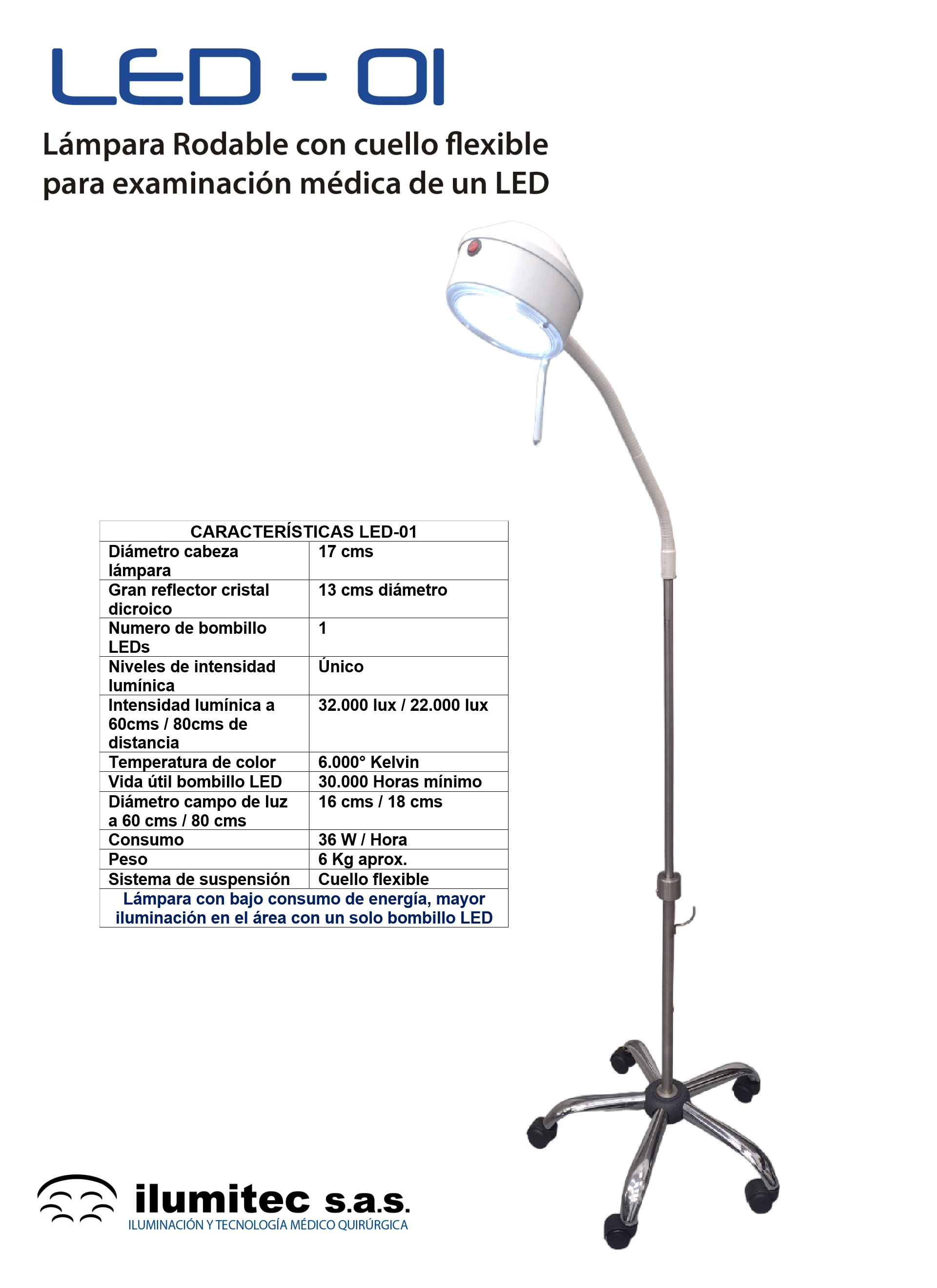 Lámparas diseñadas para examinación médica, pequeños procedimientos en áreas